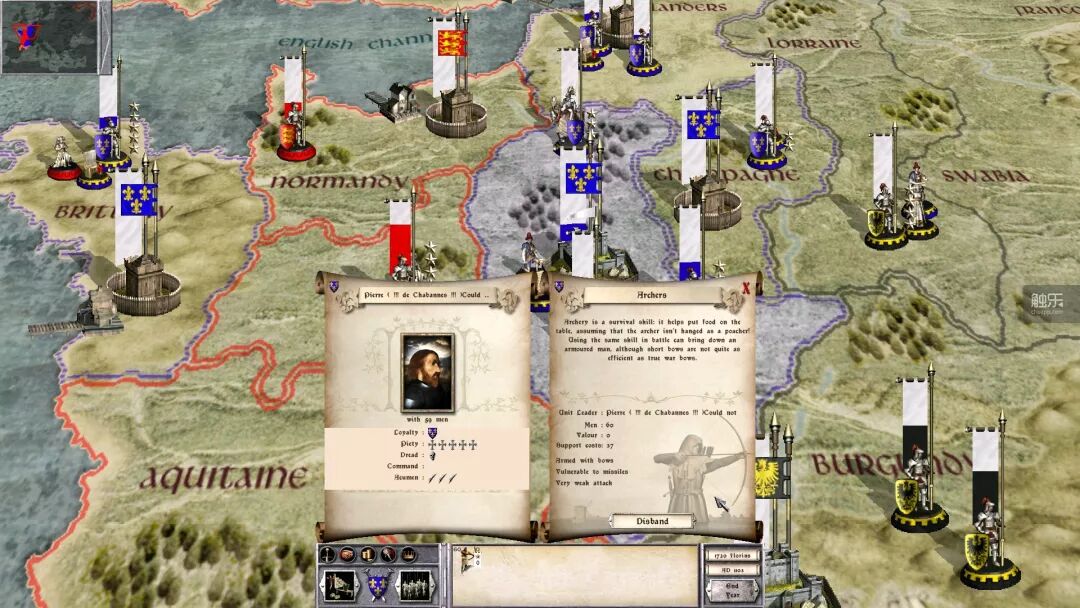 《中世纪》里加入了雇佣兵,这成为第二种征兵途径,极大丰富了玩家的战略选择。雇佣兵有两个特点,一是随时随地雇佣,不需要训练,还能被将领直接雇佣;第二自然是贵,同种类、级别的雇佣兵至少比正规军贵上一倍,维护费也要高一大截。