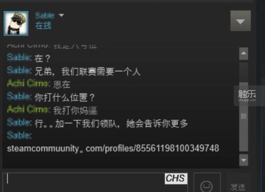 前面已经提到了,Steam账号的安全性十分薄弱,2015年以前,最常见的盗号方式是使用钓鱼链接。像流传甚广的“加一下我们领队,她会告诉你更多”这种“bot”发言,就是盗号机器人加好友之后群发消息,再给出一个钓鱼链接,诱导玩家输入自己的Steam账号和密码来完成盗号。当然,这种骗术一般都针对《CSGO》和《Dota 2》,也多数都是外国盗号者所为。