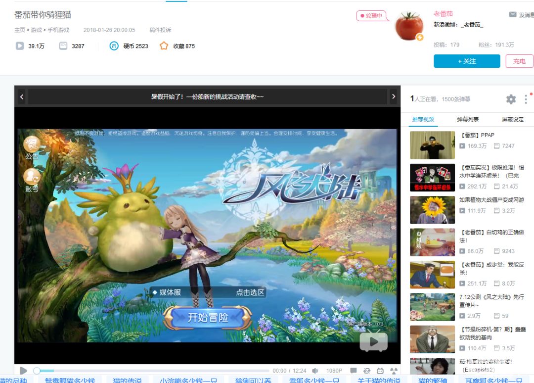 1月26日首测当天,B站知名UP“老番茄”就制作了《风之大陆》的实况视频总点击接近40W,这是《风之大陆》在B站的初次内容营销,而效果显然让官方十分满意,这个契机或许也决定了《风之大陆》将营销主阵地放在B站上的想法。