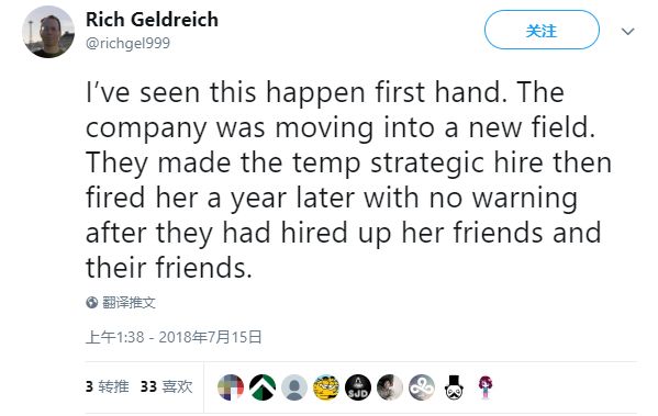 “我亲眼见过公司为了一个新的项目而雇佣了很多新人,但是一年之后却没有任何解释就裁掉了她和她的同事(朋友)。”