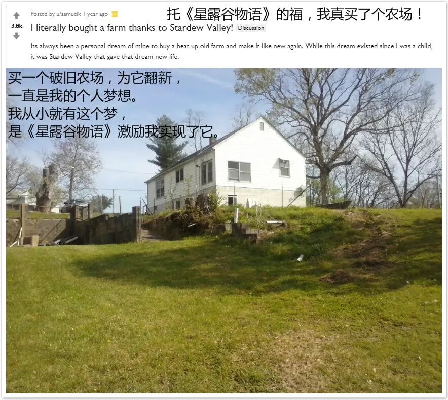 去年国外有个哥们,玩了知名种田游戏《星露谷物语》深受感动,真去买了个农场,实现了从小到大一直以来的梦想。这种事我做不到,而且农场我也买不起呀。