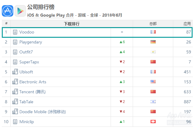 其中Voodoo最是风头正盛,几乎已经掌控了美国的iOS游戏免费榜TOP100的四分之一。