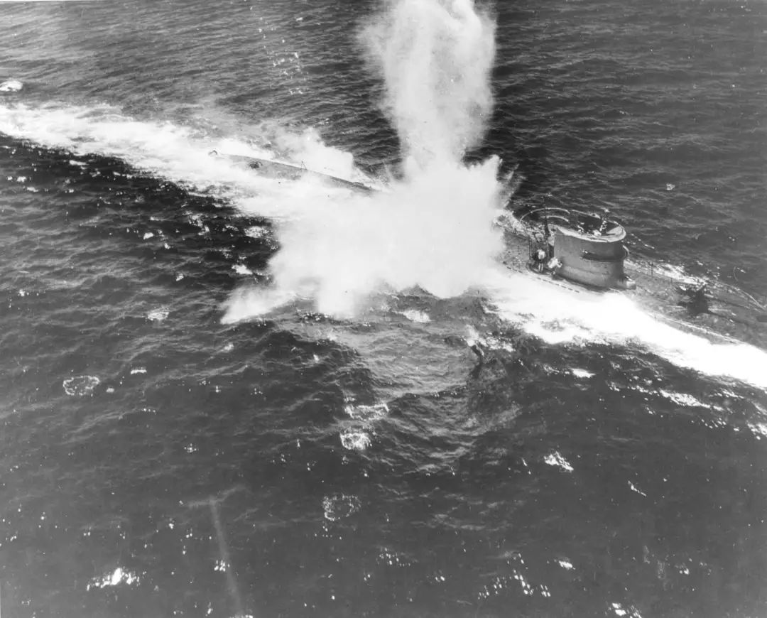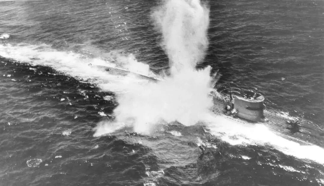 一艘在1944年前期被反潜部队攻击的VII型潜艇