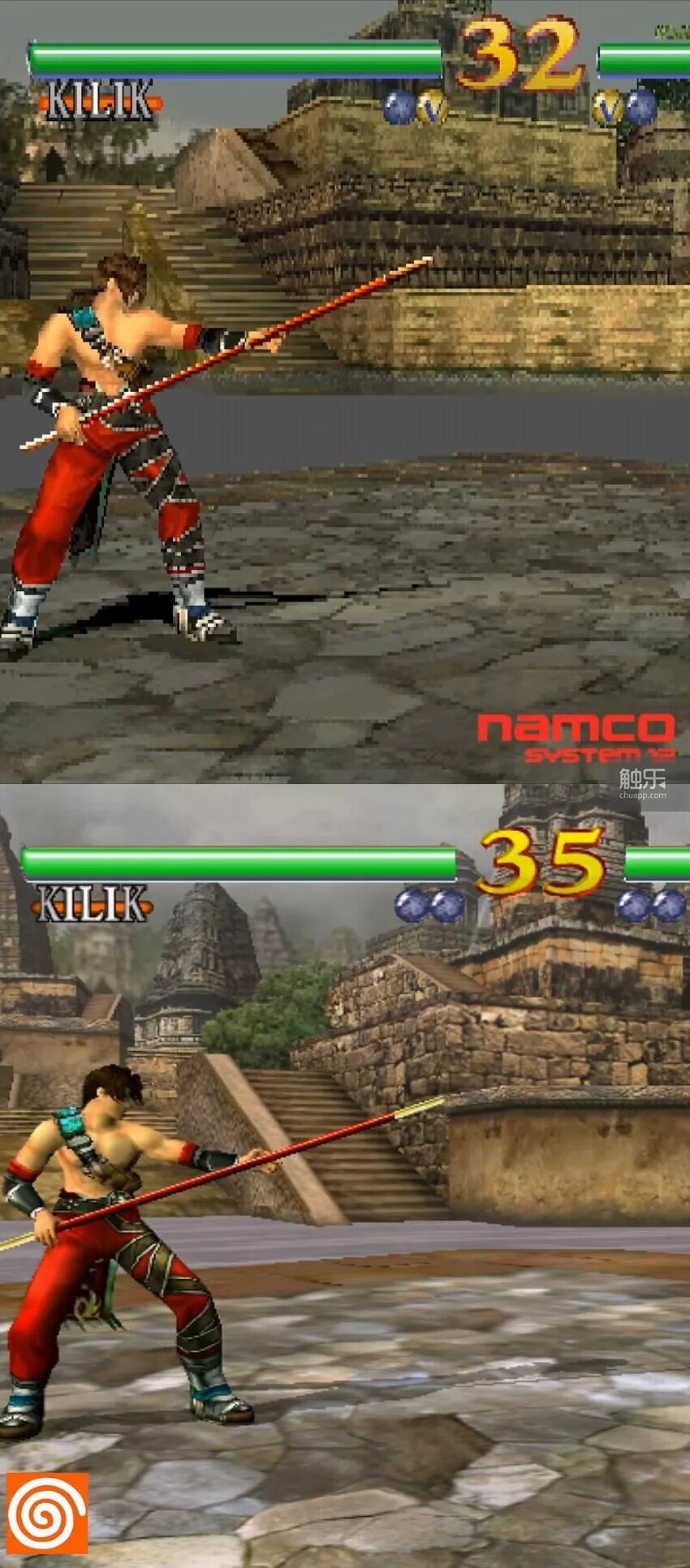 NAMCO其实并没有榨干DC的全部性能,相比后来的《死或生2》,本作的多边形数量并不占优,然而出色的贴图和动作弥补了这一缺憾。即使以今天的眼光来看,《剑魂》流畅而华丽的招式也并未过时。