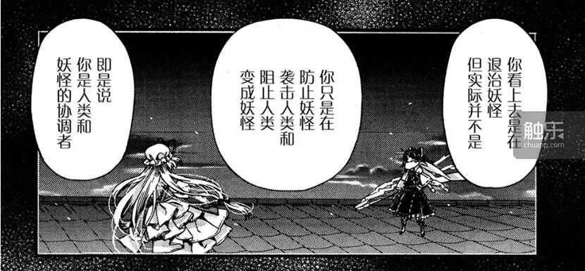 妖怪高于人类又需要人类,人类出任的博丽巫女居于其间担任大结界的维护者和惩治逾份人妖的“城管”,这是一个很违反人本主义和平等思想的牢笼架构,然而多姿多彩的“少女”们的宴会,就要靠这个系统才得以继续,而我们在此是和主角们站在统治阶级这一边,维护着过时的贵族体制。你会为此不安吗?那就对了。你不会为此不安吗?ZUN就在一次次的异变,和东一句西一句的闲言碎语中,把各种不安要素推送给你。