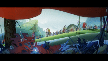 始终陪伴着玩家的,就是那面醒目的红色旗帜。根据游戏的设定,一面旗帜,代表了一个家族的延续,和一种文明的传承。人们将他们的经历绣制在旗帜上,然后将旗帜代代相传。只要旗帜还在,文明就永远不会断绝。这也正是游戏的名字——《旗帜传说》的由来。