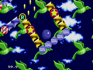 对了,跑得太痛快了也不要忘记收集:不只是加命保身的金环,每次跑过检查点的时候记得停一下,用25个金环换取迷你游戏的机会。在这个体现了世嘉 3D 野心的早期迷你游戏里,只要你坚持脑袋不会被晃得掉地上,就能获得一枚奖牌换取各种隐藏要素,其中包括了索尼克 CD/3 里的特色技能等内容。