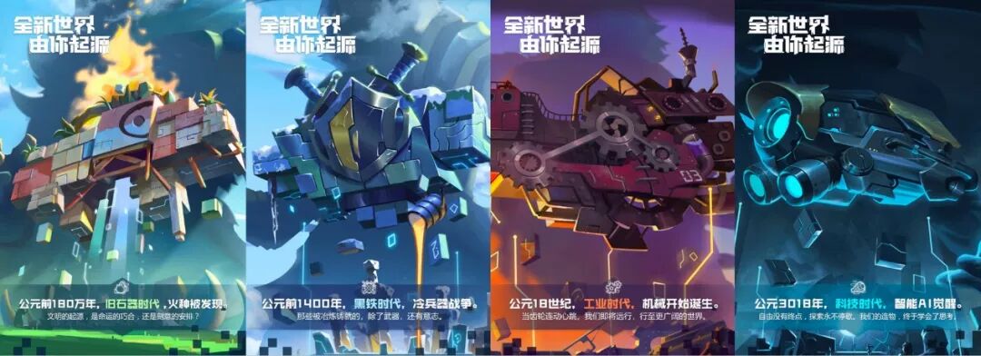 在《我的起源》中,“故事”的部分完全交给玩家自己书写。正如游戏的slogan“全新世界,由你起源”。游戏分为“石器时代”、“黑铁时代”、“工业时代”、“智能AI时代”四个大的历史阶段,而具体的历史进程和大事件却是由玩家共同创造的。