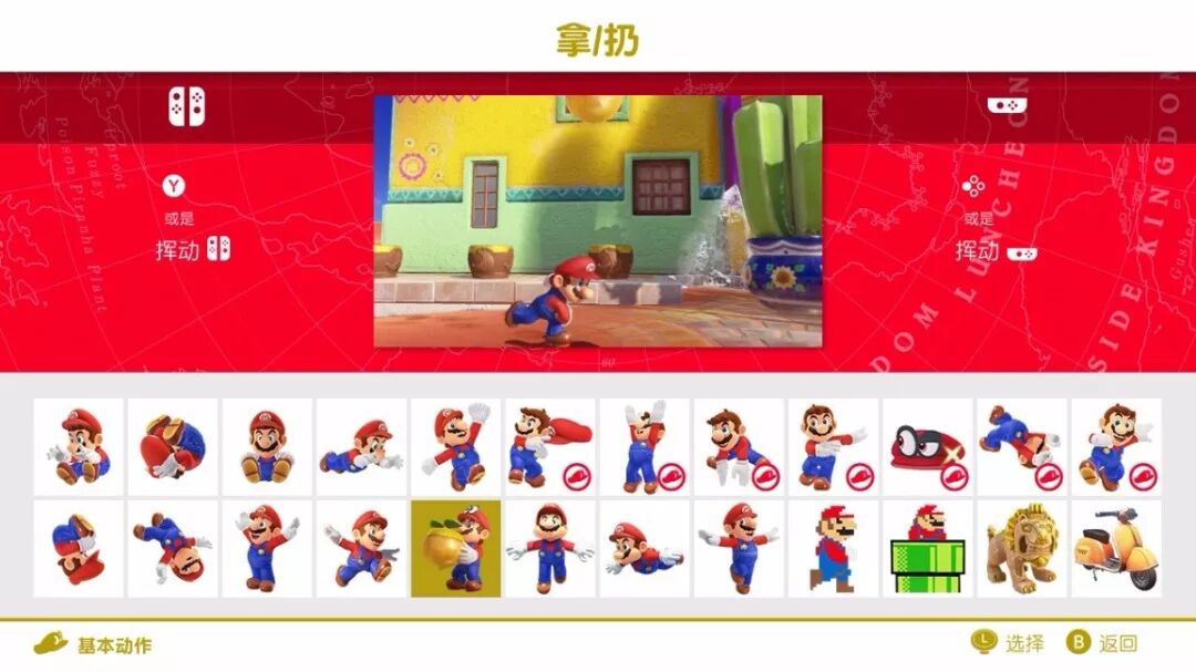 当然在奥德赛里,马里奥不仅仅只会跳,而且还能把自己的帽子当做武器,发射出去攻击所有东西。攻击种类有:向上攻击,向下攻击、转圈攻击,很多的动作归功于switch的感应设置。针对怪物种类,不同的攻击方式各有所长,总有一款适合你。