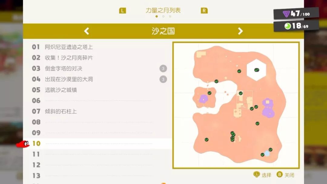 这一点在很多游戏里的地图上都会有闪闪发光或的宝箱、目标点,引导用动态物件啊等等。但是这些显眼元素的分布,是非常重要的。密集了或者分散了,就会起不到探索全地图的作用,还有可能引起玩家的不适,在某一片区域太累了,或者太轻松,这就是游戏节奏的把控了。另外每个内嵌小地图的权重(权重就是游戏元素的多少,玩家在这块地图的游戏时长),也是影响分布的一个重要因素。一般显眼的元素,游戏时间都会较长,权重也会高一些,相应的奖励也会多一些。平衡好这些小地图的分布对一个关卡设计者来说是非常困难的,但是任天堂做到了!看很多攻略给的月亮标记就会发现,地图的分布恰恰印证了这一点,游戏时间多的,含有一些景点的地方恰恰是设计者希望玩家多做停留的地方,月亮也会相对集中。