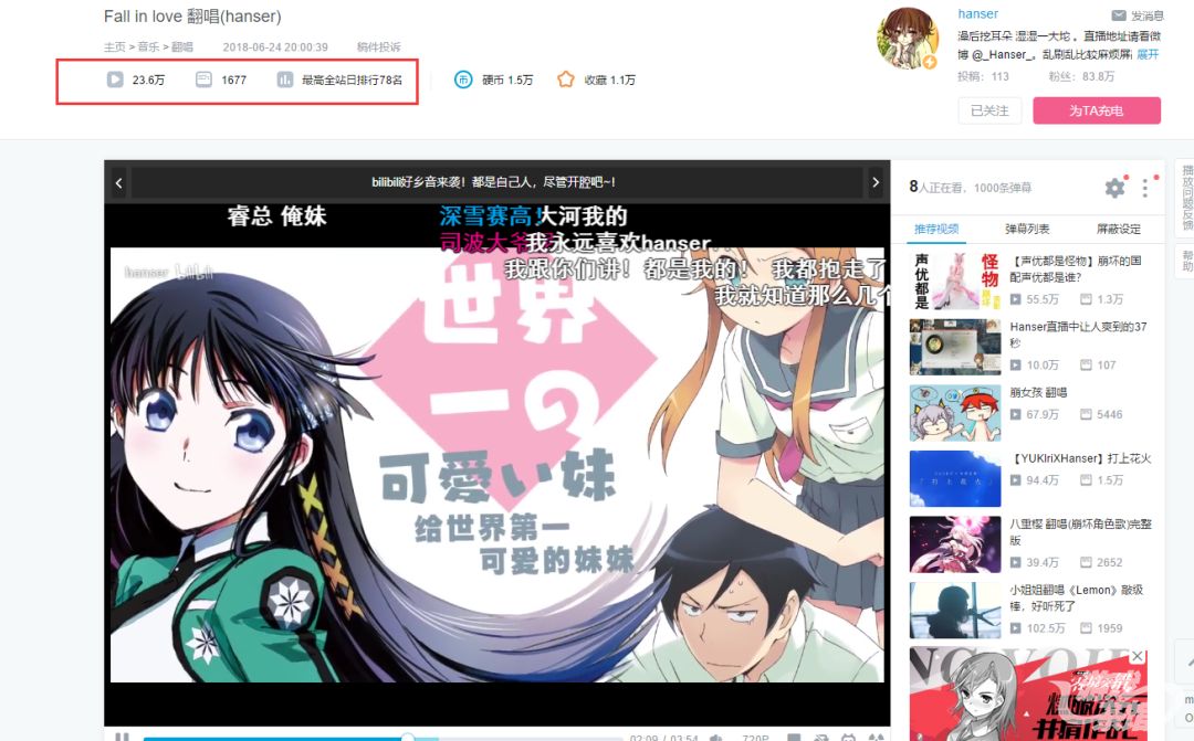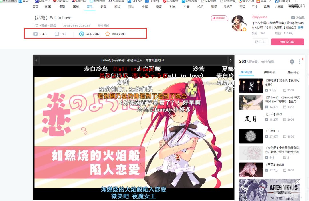 除了动画杂谈之外,围绕B站做的还有《零境》主推的主题曲《FALL IN LOVE》。6月22日《零境》主题曲《FALL IN LOVE》正式发布;6月24日B站知名音乐区UP主“Hanser”翻唱了《FALL IN LOVE》,该视频在B站最高日排行78名。在这之后,“祈Inory”与“泠鸢“等多个B站音乐区知名UP也翻唱了《FALL IN LOVE》。