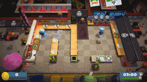 而与之对比,作为《胡闹厨房2》的核心玩法,其线下合作模式完全是另一副模样。在线下模式中,玩家间的距离被拉进,这也杜绝了上面两个问题让你心烦意乱的可能。玩家们能够真正地进行无间的合作,通过局势的变化合理分配任务。