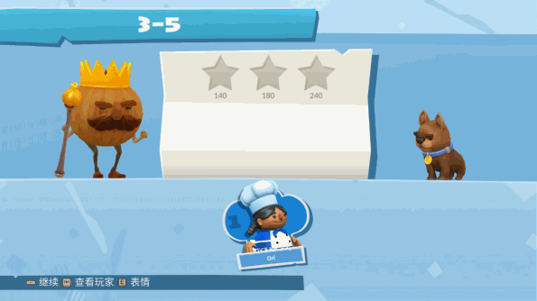应该说,《胡闹厨房2》的难,并非“强人所难”的难。基于巧妙的关卡设计和恰到好处的回馈机制,游戏的难度并不给人以敌意,而是让玩家愿意不断去发起挑战。这样的设定,为不同类型的玩家提供了不同的通道:自诩硬核的玩家自然不断摸爬滚打,以全部三星的成绩爬上巅峰,将游戏踩在脚下;渴望得到休闲体验的轻度玩家也能“划水摸鱼”,在及格线旁游走徘徊,看到一星亮起时拍拍胸脯松一口气。这一切的结果,都取决于你对自己的要求。