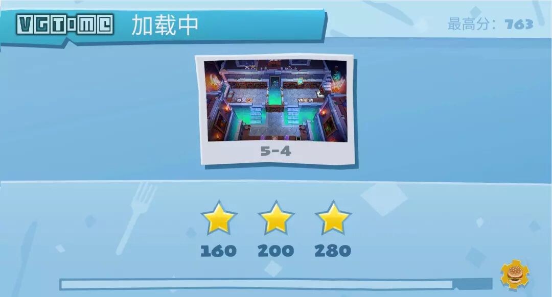 这儿就要重提上文说到的一个信息:交纳了菜品后,玩家将会得到一定的分数及小费作为奖励。而游戏的通关机制完全围绕这个系统展开。与第一代一样,游戏中的每一关都预设了三颗星,在关卡结束后通过玩家获得的分数评星。获得三星自然可以作为炫耀的资本,但请注意:获得一星同样可以继续之后的关卡。别看一星看起来门槛很高,实际上游戏中成功交纳菜品获得的分数同样令人满意。实际上,每一关成功完成三到四道菜,就可过关。
