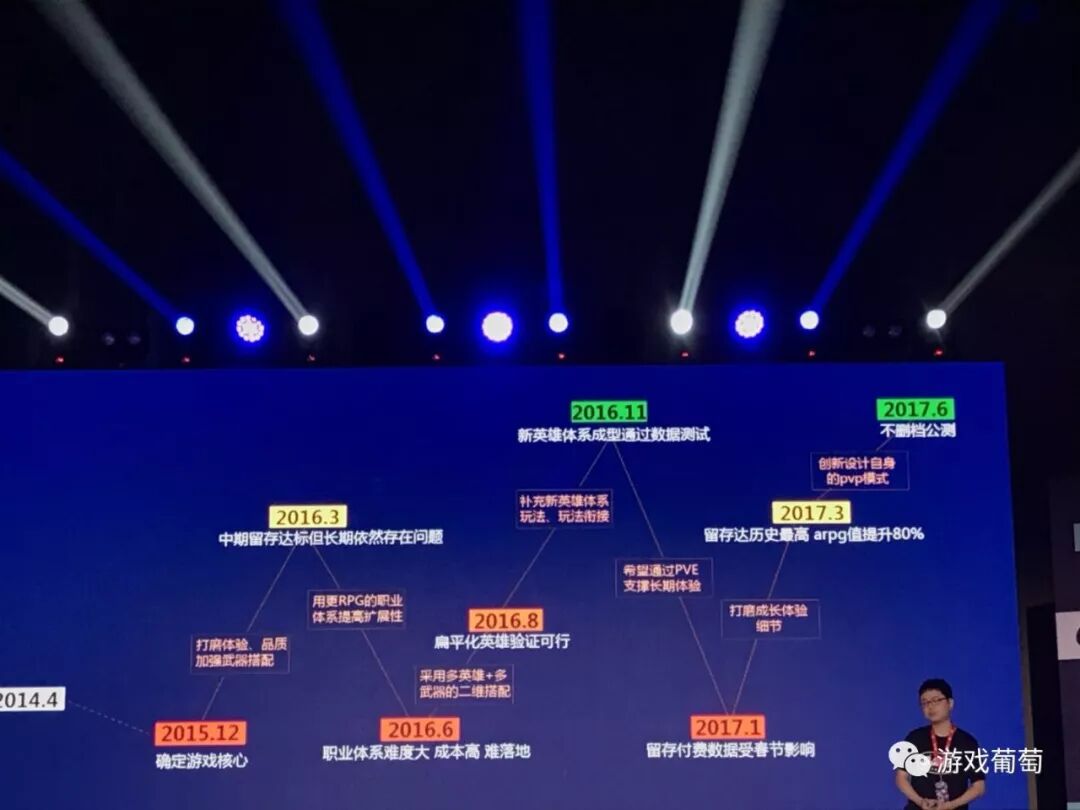 2015年12月份我们启动了第一次正式的用户测试,而之前我们还经历了从ARPG到竞技游戏再到ARPG方向的变化。2016年3月份基本确定了在这个ARPG方向下以武器为主的核心玩法。虽然短期数据还不错,但我们知道这种程度的游戏深度是无法支撑更长时间的运营目标的。所以,我们尝试将战斗体验向英雄方向扩展。渡过了英雄体系的搭建之后,我们在PVE和商业化体系的搭建过程又再一次遇到了一次挫败。