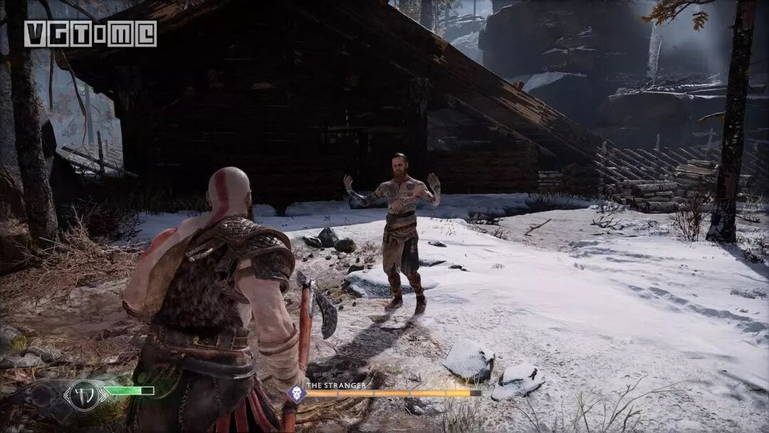 第一阶段是预热阶段,发生在奎托斯的后院。在这个阶段,巴德尔的攻击欲望并不强烈。由于此为游戏中第一场 Boss 战,玩家们需要一段时间进行适应。玩家可以把巴德尔当做训练木桩,享受将他扔向树木和石头的壮观景象(这也就是我在前面原型中提到的非常有趣的部分)。