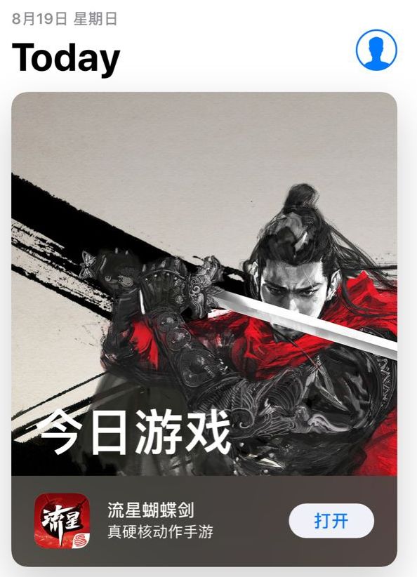 今天苹果在App Store给《流星蝴蝶剑》的位置是“今日游戏”,能上该推荐位的一般是风格鲜明的游戏,与市场主流产品明显差异