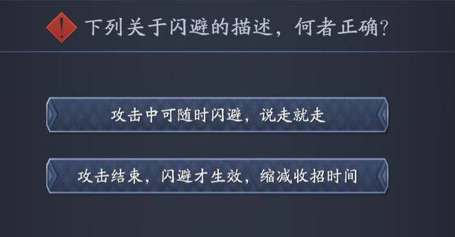 强调一句还不放心,居然又弹出个选择题,问玩家到底啥时候才能闪避,也是煞费苦心。
