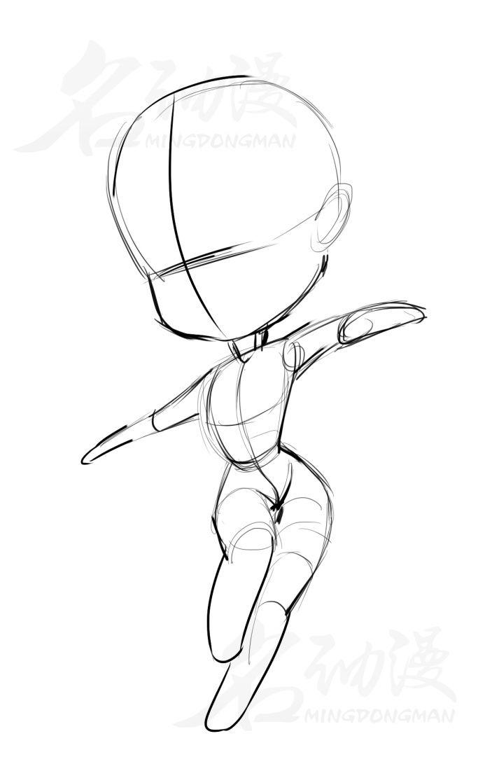 由于Q版为了体现圆润感,在人物的方面省略了很多线条,因此在表达动态上,就不如正常人体那么丰富。所以我们在对Q版人物动作的幅度上,要进行适当夸张才能达到一定效果。