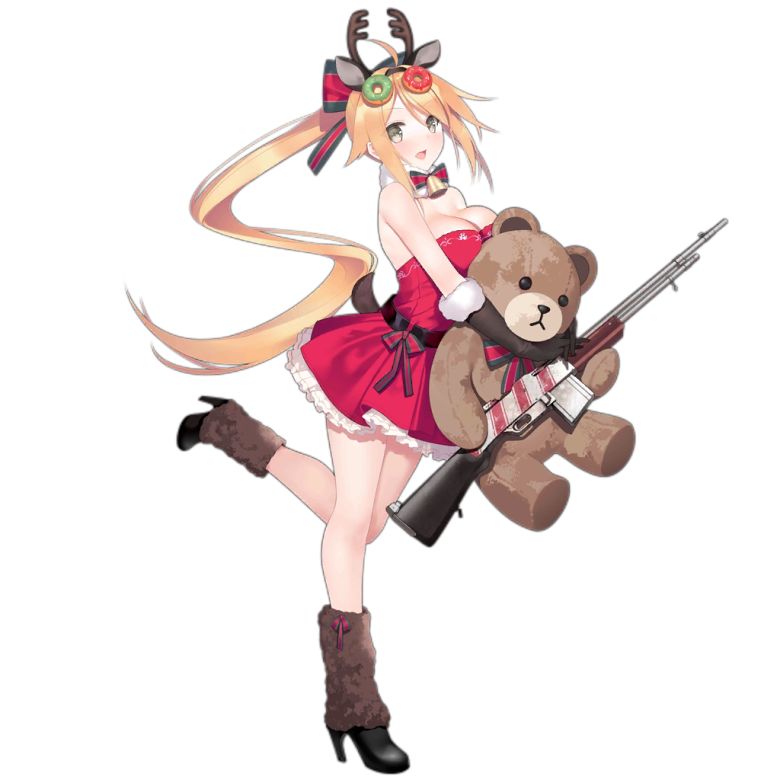 比如《少女前线》里面水乌龟设计的M1918机枪的雪之仙女的皮肤。在动态Q版中,枪娘头上的鹿角,甜甜圈,发带,兽耳等均要保留。