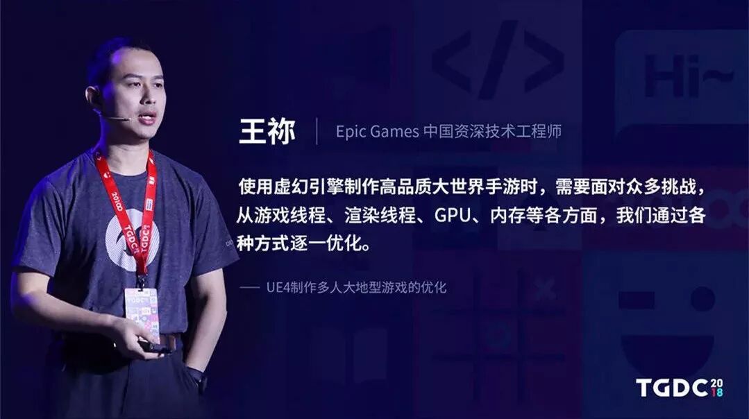 在2018TGDC大会上,来自Epic Games中国资深技术工程师王祢先生发表了《UE4制作多人大地型游戏的优化》主题演讲。王祢有近10年的虚幻引擎使用经验,从console游戏、掌机到PC端MMO游戏,再到手游,都有过相关开发经验;现在Epic Games China,他作为唯一的引擎技术专家,参与和帮助了众多使用UE3和UE4的项目解决各种问题。以下是演讲实录: