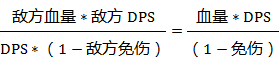 时间1 = 敌方血量/ DPS*(1-敌方免伤)