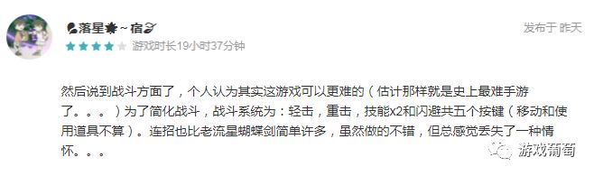 在刻板印象中,玩家可能会喜欢重度手游,但不一定会接受硬核的操作。但《流星蝴蝶剑》却反其道而行之,让操作难度既成了游戏的话题,又成了玩家核心乐趣的来源。该作在TapTap的评分为7.7分,不少玩家都对操作部分给出了肯定的意见。