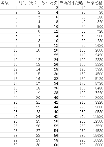 首先我们有一个直观的感受:等级越高,单场战斗经验越多。这样设定的原因主要是可以避免高级玩家可以刷低级怪快速升级。举个例子,如果所有等级战斗经验都是10点的话,那么我一个20级的玩家刷1级怪和刷20级怪需要的场次是一样的,但是时间上肯定刷1级要比20级快的多,升级节奏就崩了。