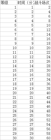 接来下,我们假设这个游戏是个最最最简单的刷刷刷游戏,升级只能靠打怪,在游戏中,我们往往希望玩家在不同阶段的战斗节奏保持稳定,那么假设每场战斗耗时为30s,我们可以推算出每一级需要多少场战斗: