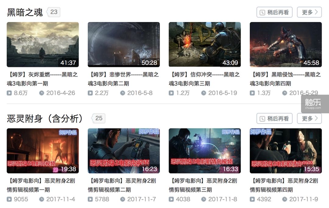 姆罗会在专栏中把自己的视频按照系列分类,方便观众观看