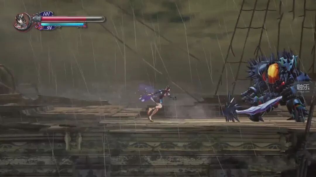 试玩版为玩家展示了两个主要场景地图,分别是初始的西洋帆船和地狱城堡的入口。游戏中3D化的人物和画面为动作与视觉带来质的提升,山根美智留的音乐亦赋予我们重逢般的享受,各种熟悉的《恶魔城》套路在Demo中被展现得淋漓尽致。我们可以看到地狱城堡大门前被拉起的吊桥,装甲巨人被灵活的主角戏耍,依靠推箱子来构筑通往高处的路径,与其他可操控角色之间的战斗,还有每一部ARPG“恶魔城”中都会出现的过场般的回廊……