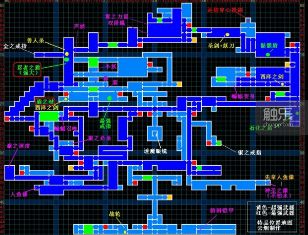 所谓的“银河城”,是粉丝们对《月下》之后“恶魔城”续作的戏言。因为在《月下》诞生之前,《恶魔城》的游戏基调一直都是以横版过关的动作类型为主,后来受到任天堂《超级银河战士》的影响,才开始在萩原彻的带领下进行转型。可以想象1997年第一次玩《月下》的玩家打开游戏地图后肯定会惊呼:“这不是《银河战士》吗?”确实,《月下》的设计理念——尤其是地图的整体构造非常有《超级银河战士》的既视感,以至于玩家们一边沉迷在峰回路转、美轮美奂的恶魔城堡里,一边也不忘调戏其为新一代的“银河城”。