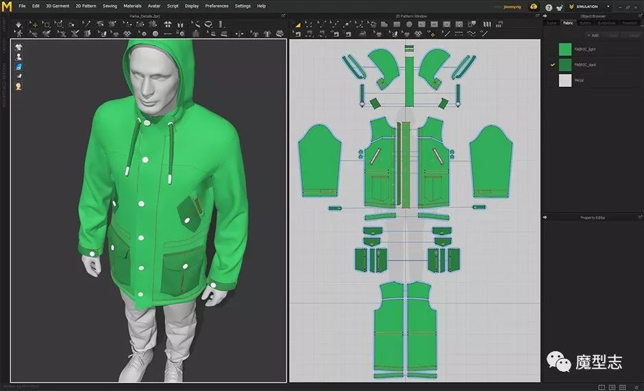 在MD中,纽扣和拉链有助于帮助衣服模型制作,可以帮助固定住板片以及帮助模型产生一些变化,但是在模型导出的效果不是很好,所以当你最终完成模型的时候在其他软件,最好是用其他单独制作的模型替换这些临时模型,