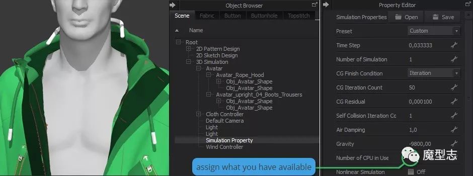 对于复杂的场景,加速整个运算的效率就是Deactivate单一的板片,与冻结和隐藏不同,Deactivate模式会强制MD在模拟过程中忽略他们,但是记住,在这个状态下,解算不会让板片和Avatar之间交互,但是缝线还是有效的。(我没用做这个,所以我现在看他这个有点懵逼,你们可以试试)