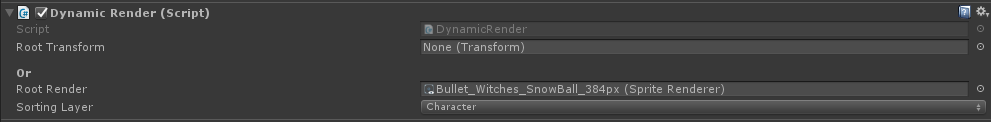 在同一层次内,Sorting Order通常不是固定不变的,角色、怪物、子弹等场景中的物体需要根据他们实时的位置进行动态调整。在这些物体上,我们加入了一个Dynamic Render的脚本,在游戏的运行过程中根据物体的Y值实时更新Sorting Order。