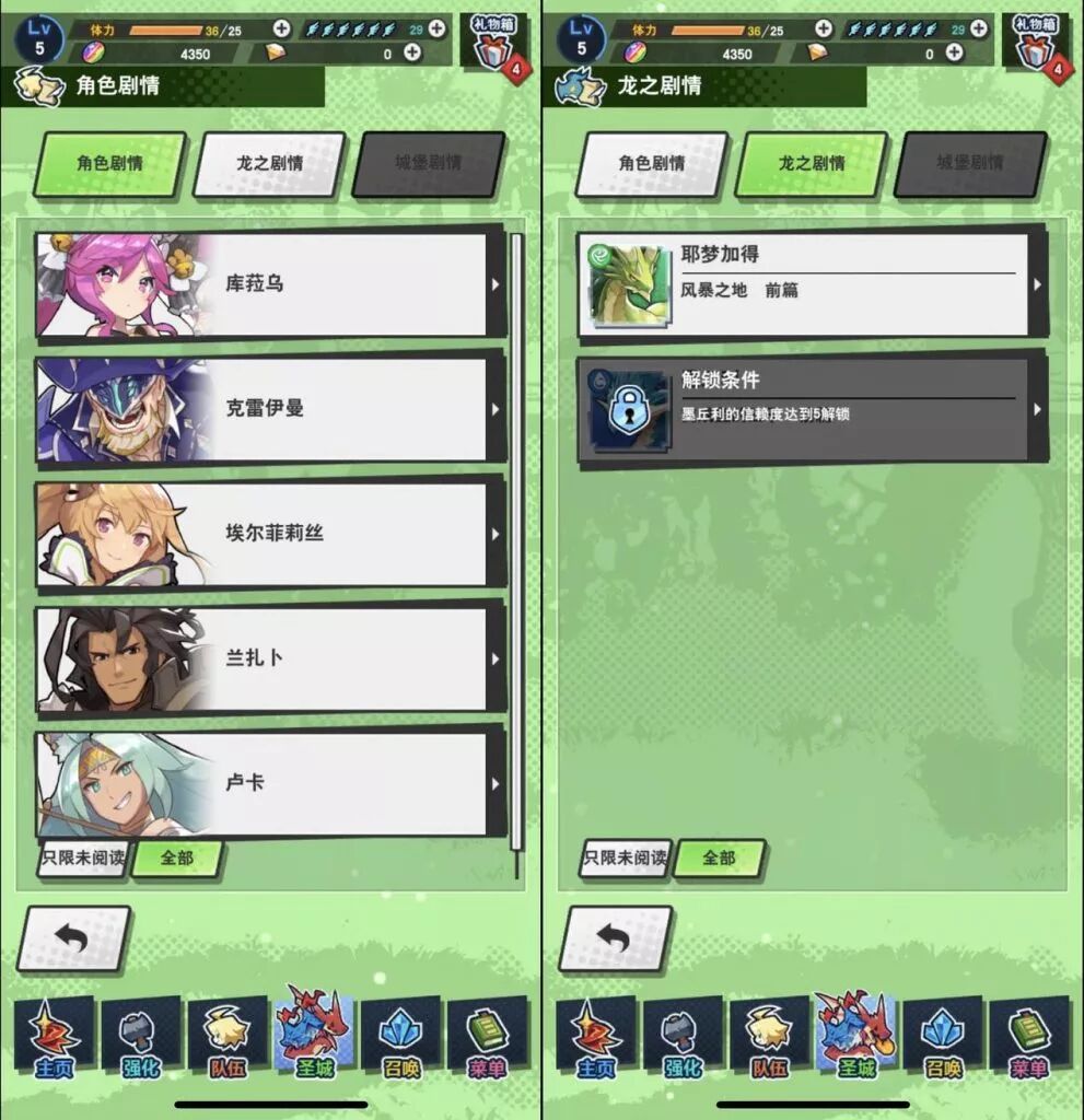 如果说主线剧情主要围绕着王子与龙之间的纠葛发展,那么支线剧情则是丰富每个个体的存在。在“圣城”模块中,还有“角色剧情”和“龙之剧情”作为补充,更能看出《失落的龙约》对于游戏世界观以及内容塑造的力度。