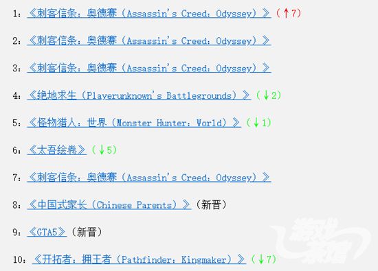 根据育碧游戏按高价区、俄区、国区严格区分的惯例,榜单前三中的《刺客信条:奥德赛》,其中有一个很可能是国区版本,再度体现了国区玩家强大的购买力。以往育碧的游戏,只要有中文,国区销量基本不是排第一就是第二。