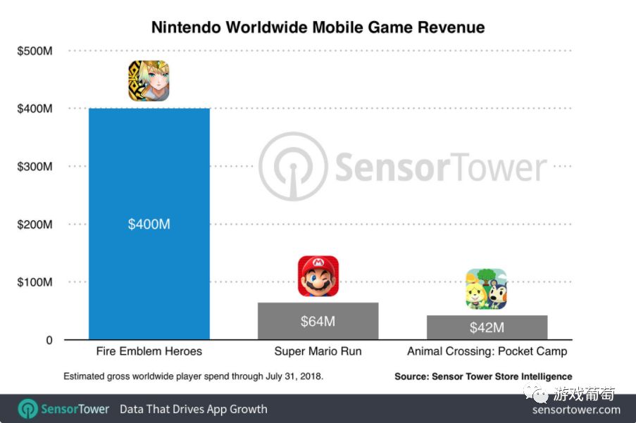 据Sensor Tower8月的数据显示,除了《火焰纹章英雄》在上线一年半拿到4亿美元的收入外,《超级马里奥酷跑》、《动物之森:口袋营地》的收入分别为6400万美元和4200万美元。《宝可梦寻宝探险》在近30天各国App Store畅销榜的300名之外,移动端的收入可以忽略不计。总体算下来,任天堂在手游业务上的总收入不到700亿日元。