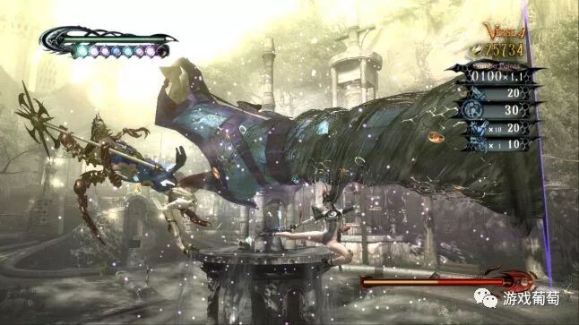 《猎天使魔女》的关键之处或许在于,每一种动作机制都能通过闪避或跳跃来取消操作(除了闪避操作本身)。Ruiz补充说道,“这个特点会使玩家觉得操作反馈迅速、可操控性高。”