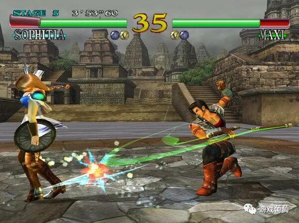 “《刀魂》8方向位移的设定非常有趣。”Sirlin表示。“我发现,在引导新手玩家时,《刀魂》是最简单那一个。对玩家来说,向上移动摇杆走向屏幕深处,向下移动摇杆走向屏幕近处,这样的设定非常贴合直觉。同时,玩家不用任何复杂的操作指令就可以做出很多动作。8个方向中任意一个方向和一个单独按键都能组合出一种动作。总的来说,《刀魂》的战斗系统某种程度上是对《Virtua Fighter》的简化,没有《Virtua Fighter》那样的深度,但很符合直觉而且很有趣。”