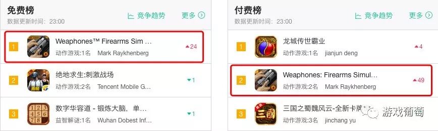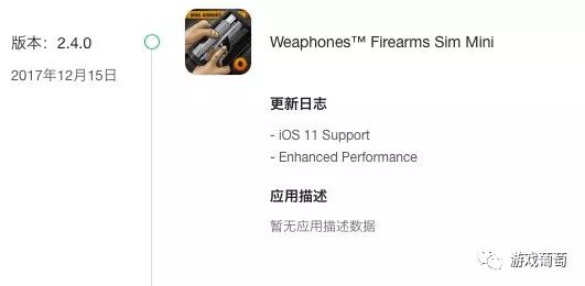 对于这款没有出自大厂,也并非处在新版本推广期的游戏来说,获此成绩确实很让人费解。数据显示,《Weaphones》早在2012年就上线海外,开发者为Mark Raykhenberg,因为本地化的缺失,一直以来《Weaphones》成绩谈不上出色,近几年甚至很少入榜。而且在2017年12月15日上线新版本后,游戏已经将近1年没更新了。