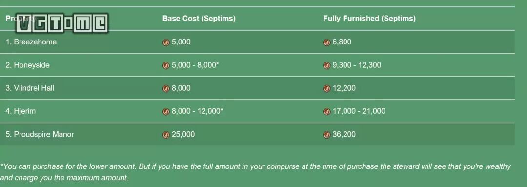 在天际省,你可以根据个人经济能力,选择不同价位的房源。最便宜的“微风阁”只需5000赛普汀,而最贵的“傲矛庄园”却需要25000赛普汀,带装修更是达到惊人的36200赛普汀。