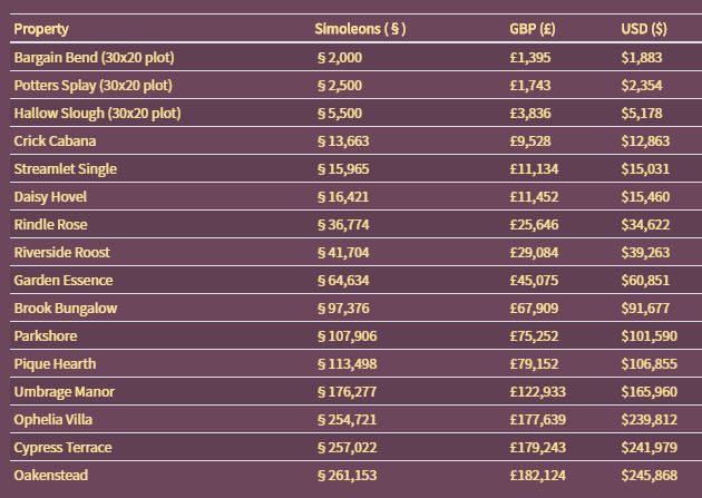 还有个问题是,如果我们将游戏中的货币换算成现实货币,这些房子会值多少美元/澳元/英镑/欧元/日元呢?