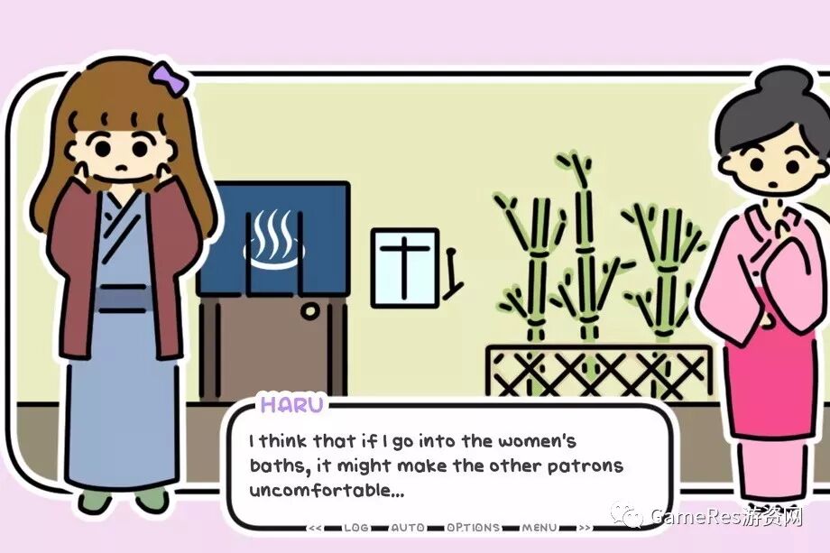 听到朋友的提议时,Haru迟疑了下,在日本,温泉浴场一般都会按照性别进行划分,虽然Haru在日常生活中将自己视为一名女子,但在实行变形手术前“她”仍是一名正常的男子。整个游戏流程仅仅两天一夜,时间约半个小时,但每一个对话选项都有可能导向不同的结局。