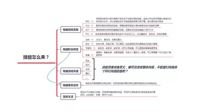 整个技能系统,是一个综合体系。在制作技能时,我们先要思考从哪几个维度来设计技能体系,想要达到一个什么效果。这里我简单总结一下,看图说话吧。