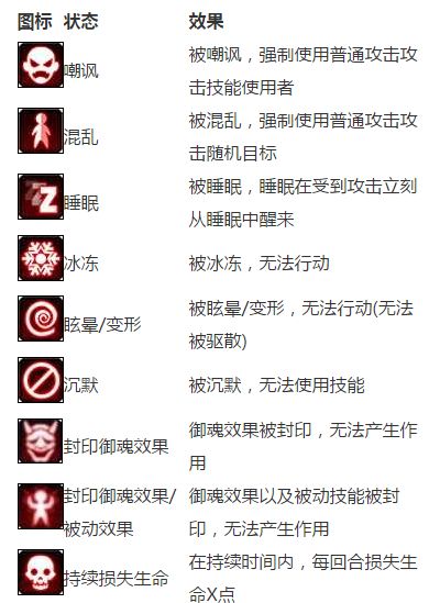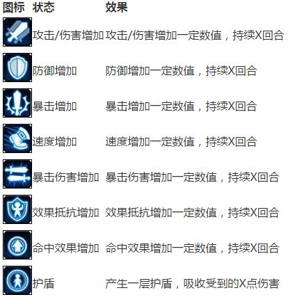 当被某些技能命中或正在被某些效果作用时,会同时显示在角色身上,一遍玩家自己和同伴及时掌握当前的状态,以便于进行下一步的操作或决策。