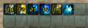 当中了BUFF后,会在玩家自己的UI界面上显示相应的BUFF状态,一般显示在角色信息框的下方,如图: