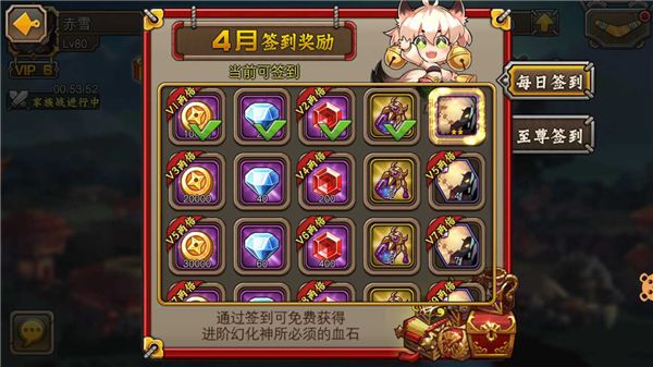 不同的VIP签到奖励两区存在不同,如下图所示,不同VIP领取奖品存在翻倍现象。如下图所示,累计签到奖励随VIP等级提升间歇性翻倍。