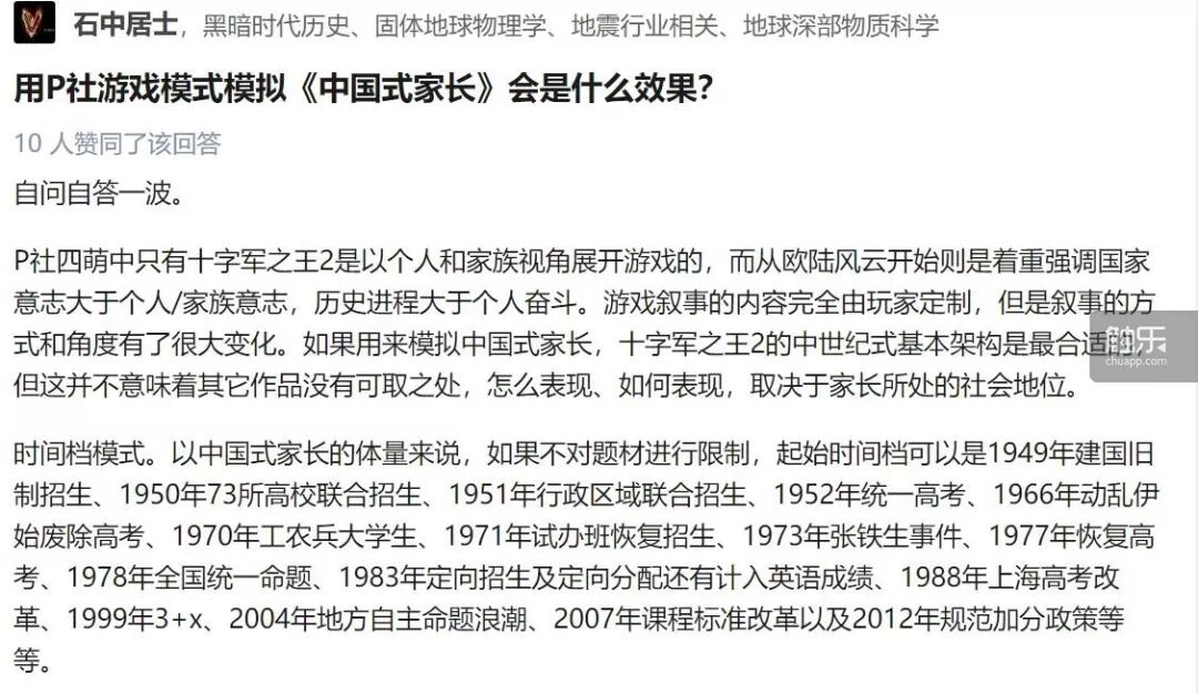 我决定暂且放弃这个一本书都不容易说清楚的问题,然而,对于不熟悉大陆地区学制的玩家来说,《中国式家长》或同类游戏,能否加入一些介绍考试制度的对白,乃至编入一些相关的争议和投票选项,比照“×××人与你有相同经历”的做法呢?当然也可以让玩家选择跳过。