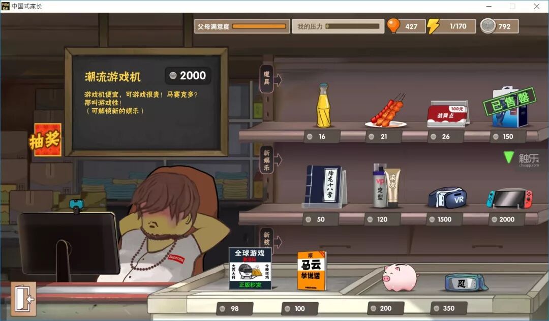 时代不会变化的问题,《太吾绘卷》是用所有皇帝、朝廷都被“小和尚”杀光瓦解,世道归于无政府的设定来解决,但武侠作品可以这样,现实不行。《中国式家长》的选择是无视问题,可以谅解,然而对脑洞已开的玩家来说,这大概就不够过瘾了。